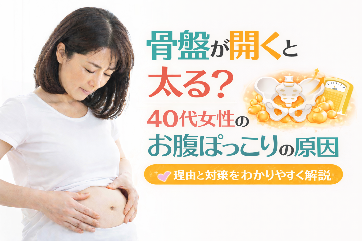 この記事では、骨盤が開くと太りやすくなる理由と40代女性のお腹ぽっこりの原因について解説します。