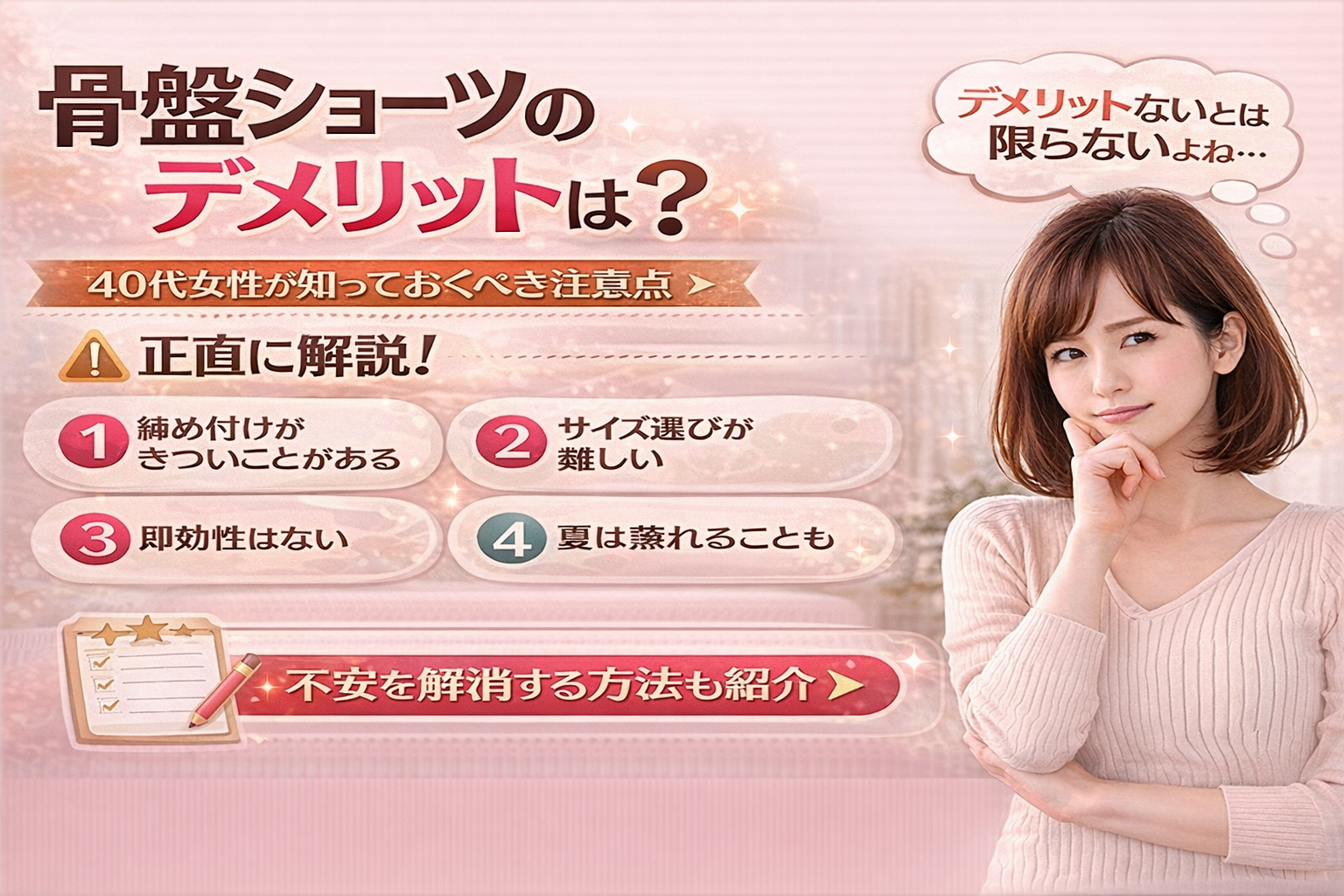 この記事では、40代女性が購入前に知っておくべき骨盤ショーツのデメリットを正直に解説します。