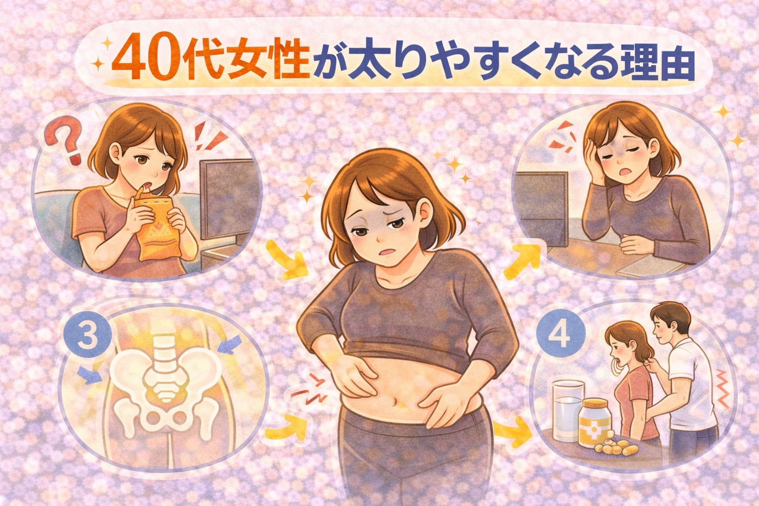 この記事では、40代女性が太りやすくなる理由と体型崩れの原因について解説します。
