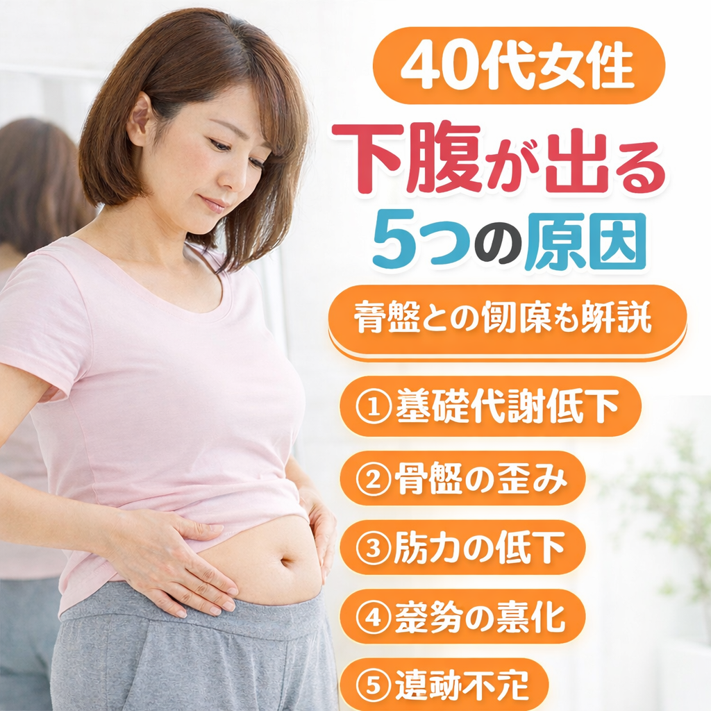 この記事では、40代女性の下腹が出る主な原因と骨盤との関係についてわかりやすく解説します。