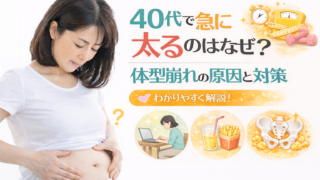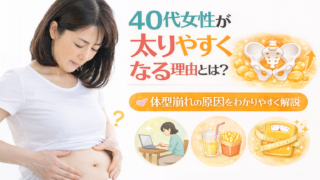 「昔と同じ生活なのに太りやすくなった…」40代になると、このように感じる女性はとても多いです。実は40代は体の変化が大きく、太りやすくなる時期でもあります。しかし原因を理解して対策することで、体型崩れはしっかり防ぐことができます。40代女性...